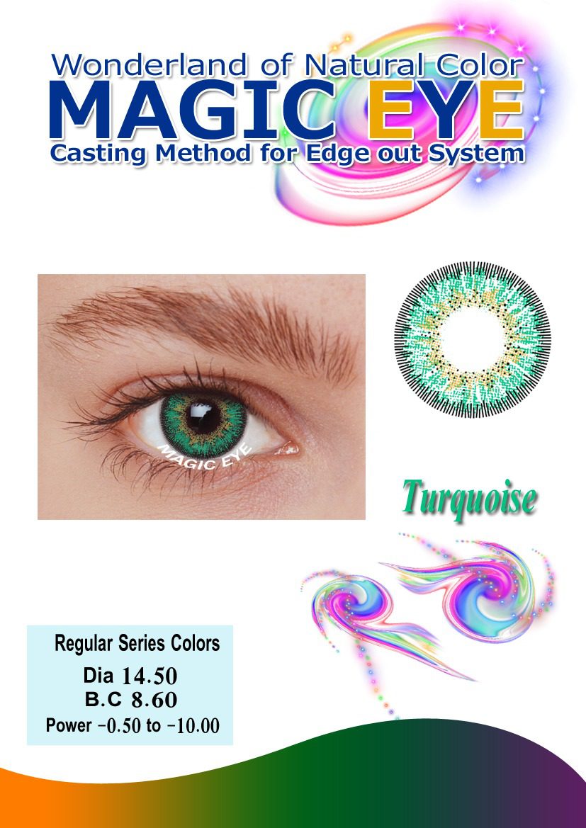 Magic Eye Turquoise Shade contact lenses feature a bright blue-green tone with smooth blending for a fresh and lively eye enhancement. Lightweight, breathable, and comfortable for all-day wear, they deliver a radiant and confident finish.
